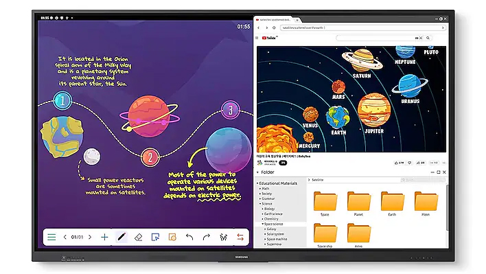 The Samsung WA75F 75" UHD 4K Touchscreen Commercial Monitor is a 400 nits bright, interactive display featuring an Android 14 operating system and Google EDLA certification for advanced functionality and ease of use in educational applications. This durable monitor can be connected to devices via HDMI, USB-C, and OPS inputs, and provides access to hundreds of apps and wireless screen sharing via Wi-Fi or LAN connectivity.Powered by AndroidThe WAF series offers familiarity to its users. It's compatible with other Android devices and provides a variety of widgets and an easily customizable home screen. These features create more flexibility in building an environment that suits various learning needs.Google EDLA CertificationWith an EDLA certification, the WAF series supports a variety of Google services like Google Play and YouTube. This access to major educational apps like Google Classroom leads to increased efficiency and enhanced communication with students.Annotate Instantly and EasilyThe WAF series lets users take notes any time with a simple press of the always-visible Annotation button. Whether watching a video or viewing any content, users can seamlessly annotate without interruptions, enhancing productivity by avoiding the need to capture images first.Split Note ModeThe upgraded Note app allows up to four independent note zones on a single page, enabling multiple students to use the whiteboard simultaneously. Students can work in their own zones without affecting others, fostering both collaboration and individual learning.Easy Multitasking with Multiple View ModesVarious screen modes, including split screen and multi-window, enable teachers to easily display information and multitask at the same time on the WAF series. This flexibility of the screen formats provides convenient access to everything that's required to create engaging learning environments.Powerful Screen SharingThe WAF series supports screen mirroring for up to nine devices, increasing student engagement. This feature ensures every student is included and engaged as content can be shared on both the large display and individual devices. It can be used on iOS, Mac, Windows, Android, or ChromeOS.Multi-Point Touch DrawingMultiple users can write and draw on the whiteboard at the same time with the display's advanced multi-touch capabilities. Up to 40 simultaneous touchpoints are possible, allowing large groups of students and teachers to collaborate and learn together in an efficient and natural way.Switch Pens Without Changing SettingsThe dual pen function enables the use of two different writing tools with no downtime. With the double-sided nib applied, users can effortlessly switch between two different colors on the front and back side of the pen, without needing to change the settings or interrupt the flow of the lesson.3-in-1 USB-C PortConnectivity is enhanced with the 3-in-1 USB-C port, enabling screen mirroring, touch control, and external device charging (max 65W). Teachers can simply connect to the USB-C port, allowing them to deliver interactive and engaging lessons without any hassle.HDMI Out for Multi-Display ApplicationsWith the HDMI-Out function, whiteboard screen content can be shared on a different and larger screen in the classroom. This feature ensures teachers can provide a real-time, interactive experience for students who can easily view the screen content regardless of where they sit in the classroom.All-in-One Capability with OPS (Open Pluggable Specification)With the addition of a separately available OPS module, the OPS slot in the WAF series can transform the interactive display into a Windows device, eliminating the need for an external PC. Users will have access to all the features and functionalities they are familiar with from a standard computer, directly on the display.Seamless Device ManagementThe WAF series provides access to both a cloud-based and on-premises device management solution, which is essential for advanced educational environments. This solution optimizes the remote management of whiteboard settings and applications, guaranteeing operational efficiency and stability.The cloud-based DMS solution is provided free of charge for one year. Pricing policy is subject to change.