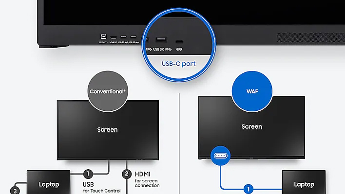 Advanced Messaging Across Multiple DevicesImmediately send important messages across campuses, classrooms, and public spaces. Urgent communications are displayed on interactive whiteboards, so students and other personnel are alerted in real time.Superior DurabilityThe WAF series protects against electrical surges by using a glass fuse and 500V(DC) capacitor that absorbs instant spikes in voltage. With anti-humidity glue applied to the critical areas of the chipset, it can also be a valuable tool for schools in areas with high humidity or rainy climates.Please note, the claims of enhanced surge and humidity protection for the WAF series are based on Samsung's internal testing.